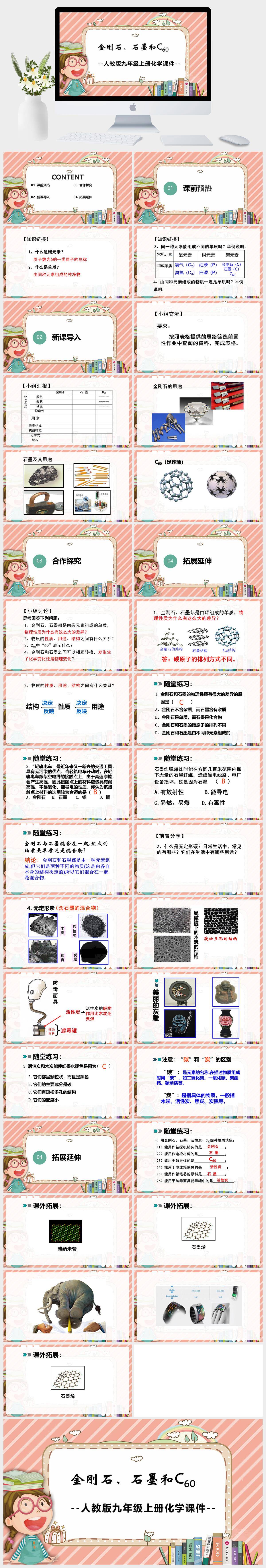 HKHX454-人教版九年级上册化学《金刚石、石墨和C60》课件PP T模板成品课件