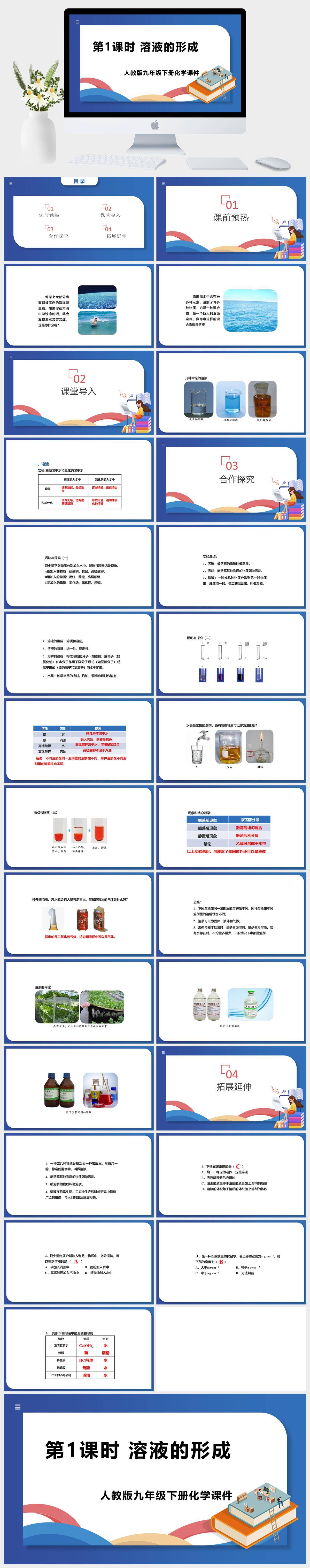 HKHX511-人教版九年级下册化学第九章《课题1溶液的形成》 课件PPT模板成品课件