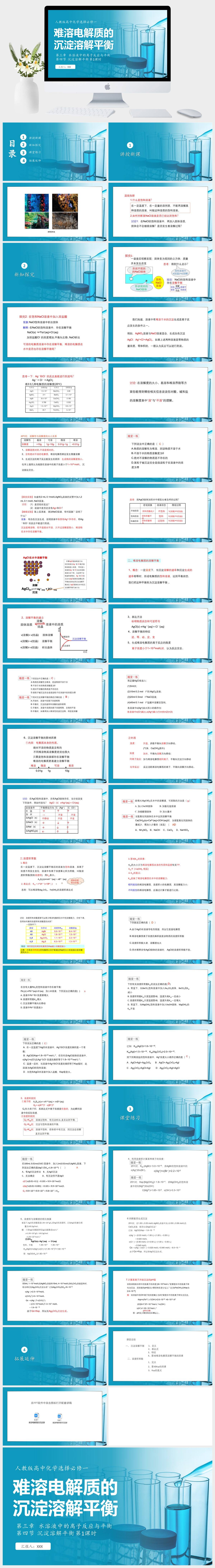 HKHX911-人教版高中化学选择必修一 第三章 水溶液中的离子反应与平衡 第四节 沉淀溶解平衡 第1课时 难溶电解质的沉淀溶解平衡PPT模板成品课件