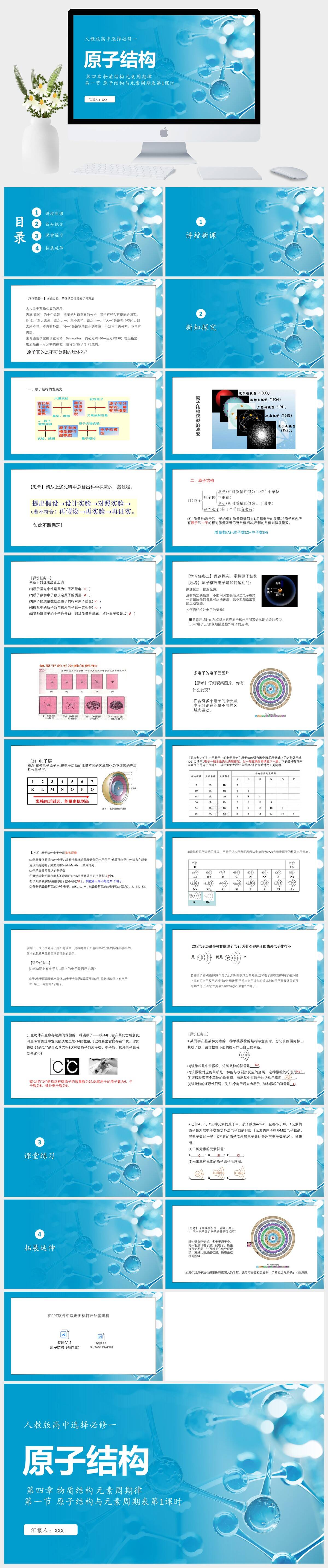 HKHX961-人教版高中选择必修一 第四章 物质结构 元素周期律 第一节 原子结构与元素周期表第1课时 原子结构PPT模板成品课件