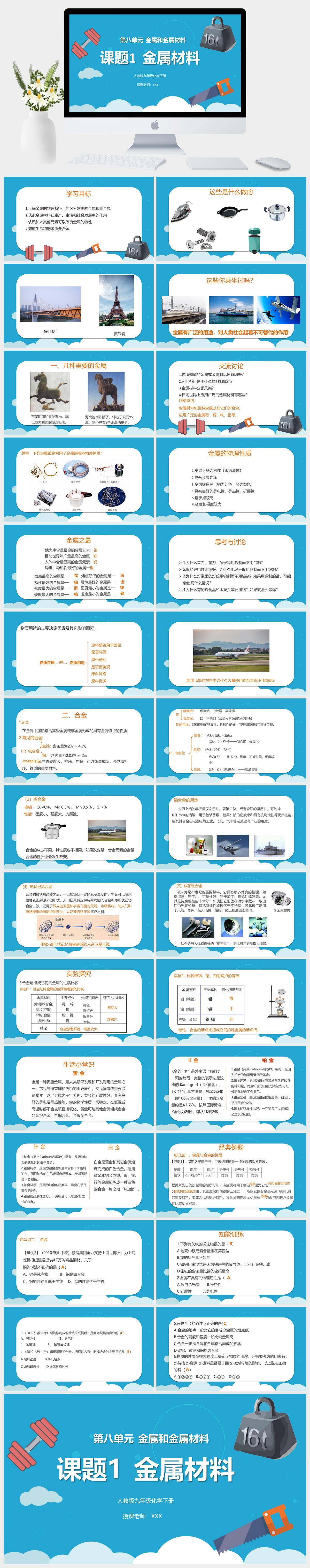 HKHX1184-人教版九年级化学下册第八单元课题一金属材料PPT课件PPT模板成品课件