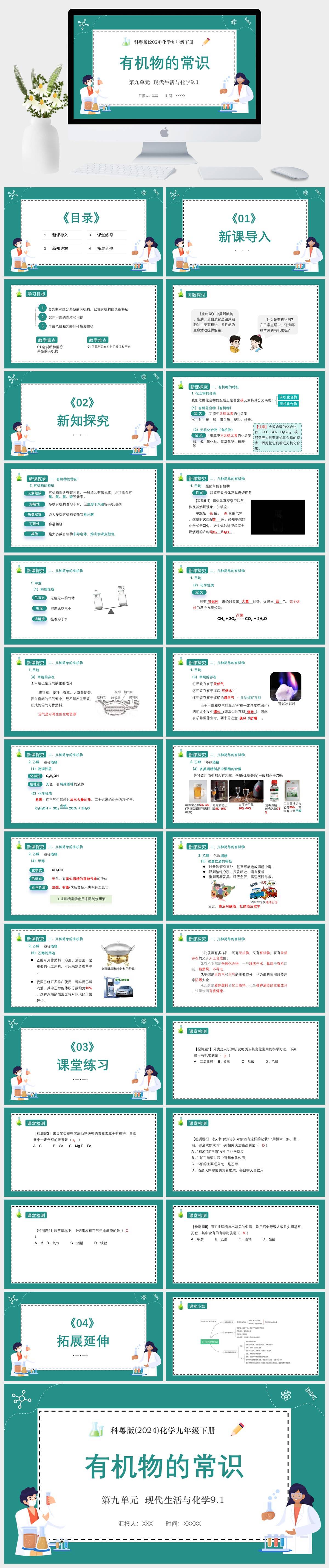 HKHX1207-科粤版(2024)化学九年级下册第九单元 现代生活与化学9.1 有机物的常识PPT模板成品课件