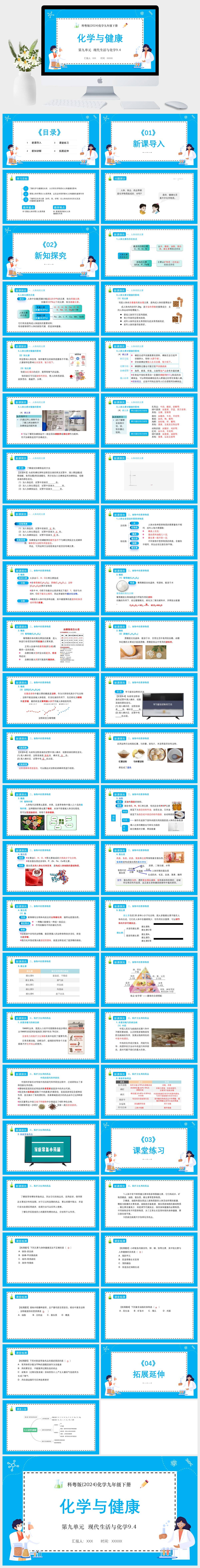 HKHX1210-科粤版(2024)化学九年级下册第九单元 现代生活与化学9.4 化学与健康PPT模板成品课件