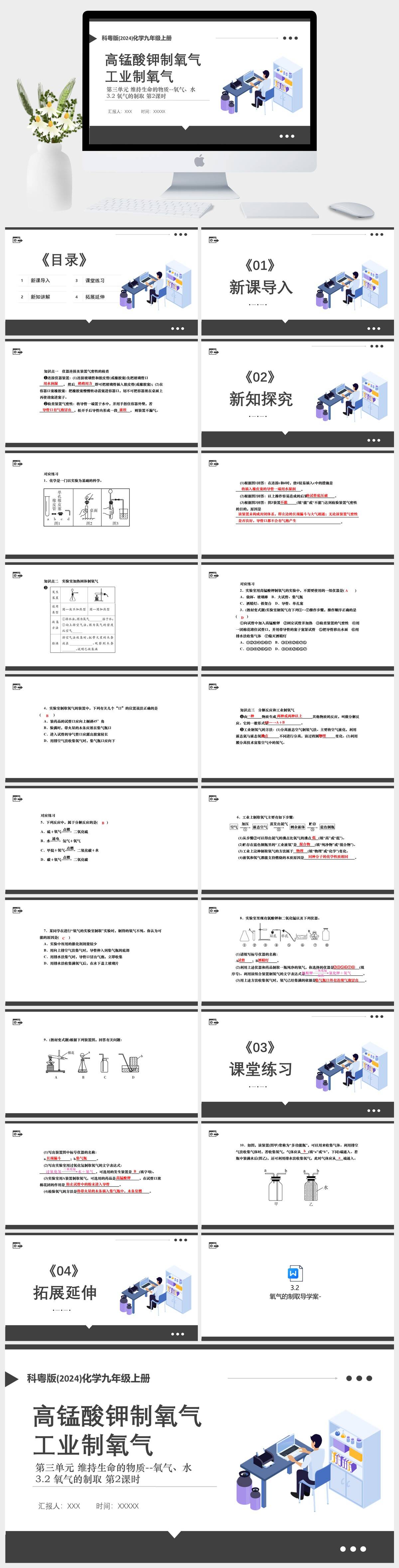 HKHX1241-科粤版(2024)化学九年级上册第三单元 维持生命的物质–氧气、水3.2 氧气的制取 第2课时 高锰酸钾制氧气 工业制氧气PPT模板成品课件