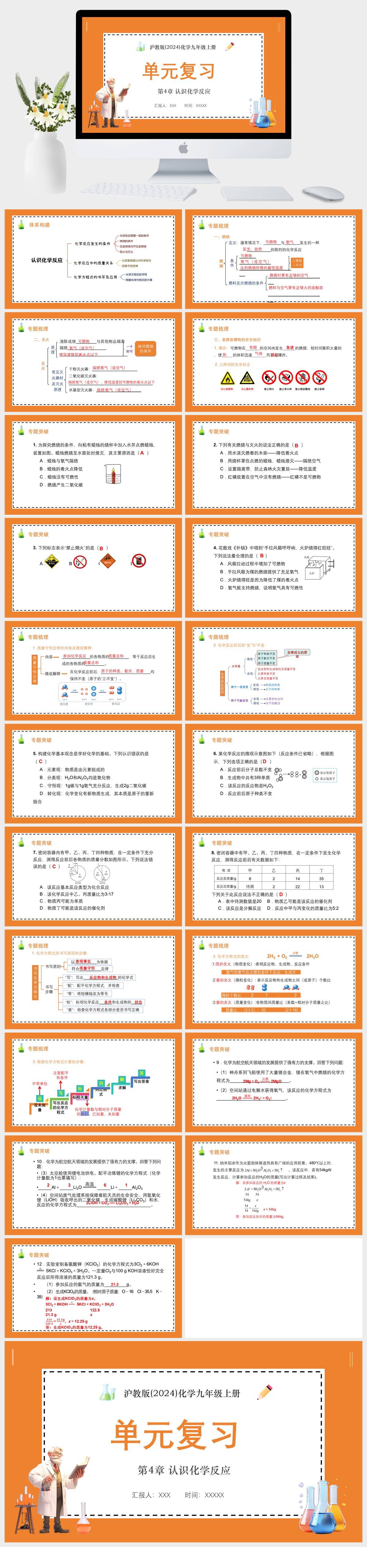 HKHX1284-沪教版(2024)化学九年级上册第4章 认识化学反应单元复习PPT模板成品课件