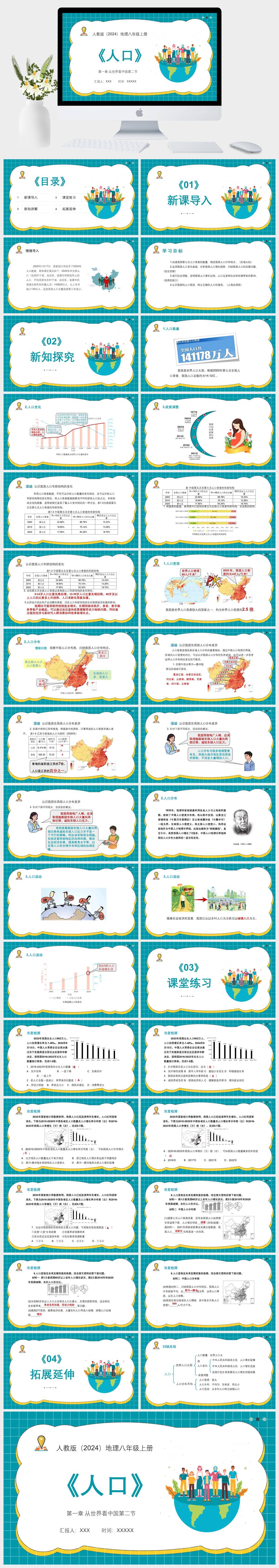 HKDL21-人教版(2024)地理八年级上册第一章 从世界看中国第二节人口PPT模板成品课件