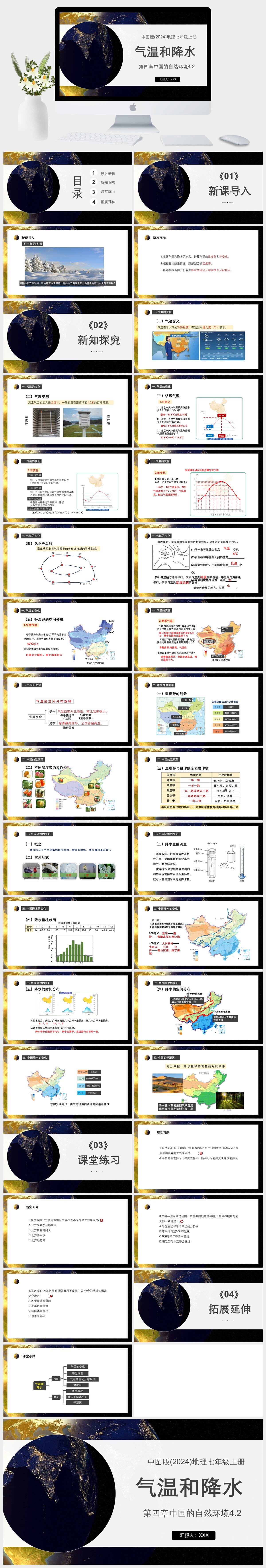 HKDL845-中图版(2024)地理七年级上册 第四章中国的自然环境4.2 气温和降水PPT模板成品课件