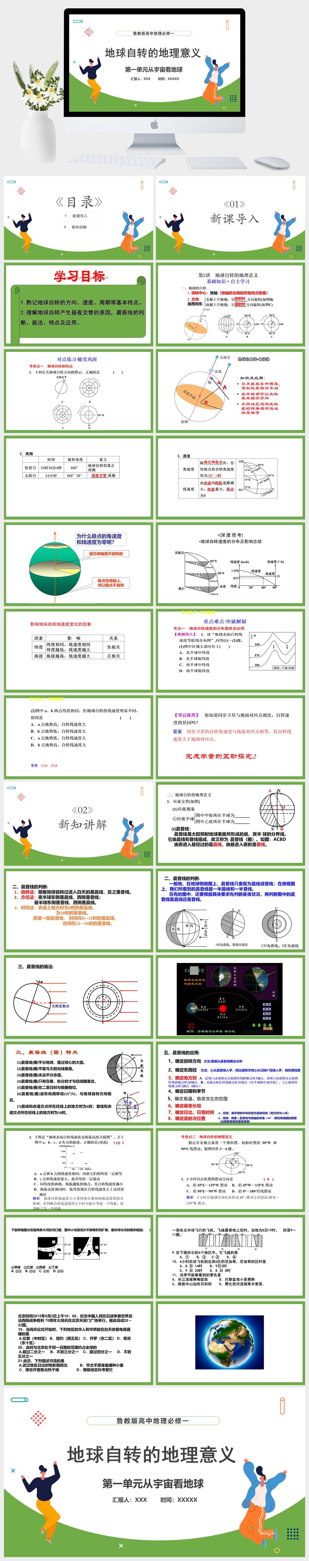 HKDL1360-鲁教版高中地理必修一第一单元从宇宙看地球地球自转的地理意义PPT模板成品课件