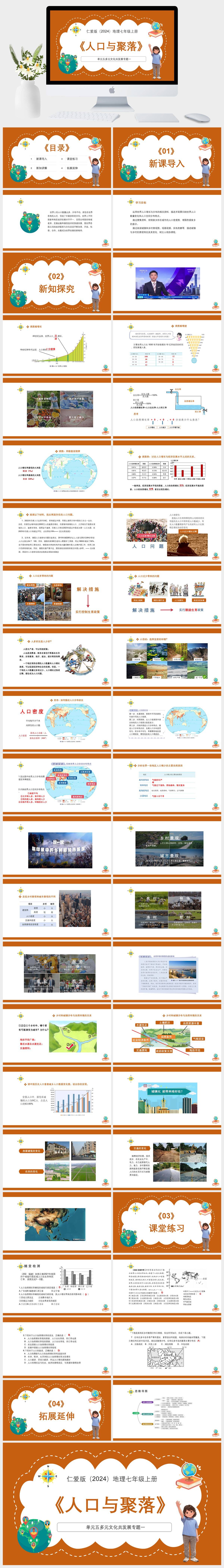 HKDL1457-仁爱科普版(2024)地理七年级上册单元五多元文化共发展专题一人口与聚落PPT模板成品课件