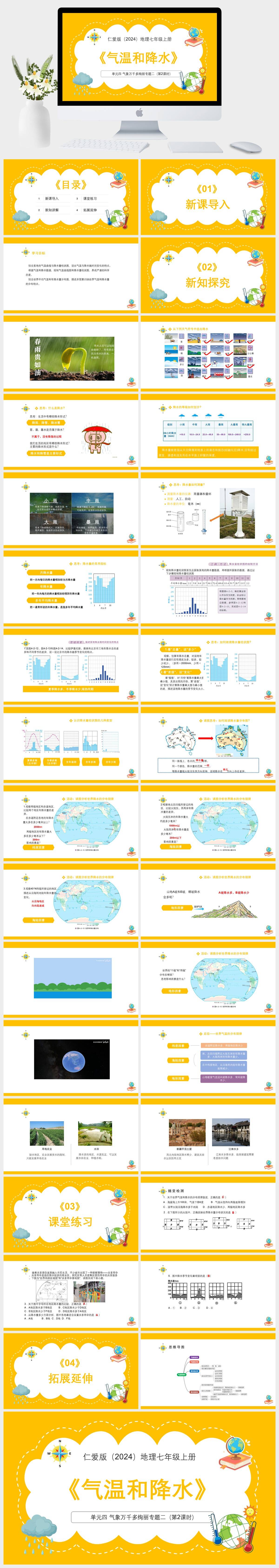 HKDL1459-仁爱科普版(2024)地理七年级上册单元四 气象万千多绚丽专题二气温和降水(第2课时)PPT模板成品课件