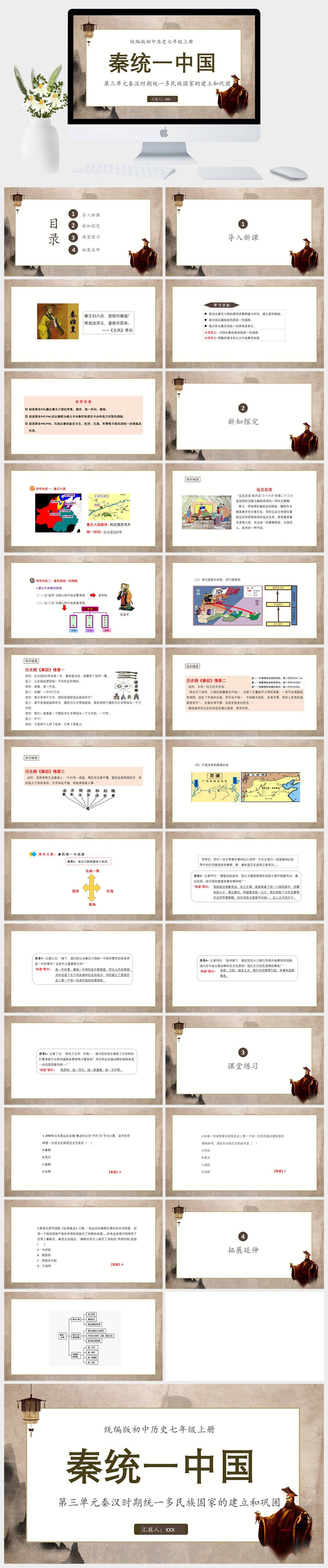 HKLS27-统编版初中历史七年级上册第三单元秦汉时期统一多民族国家的建立和巩固秦统一中国PPT模板成品课件