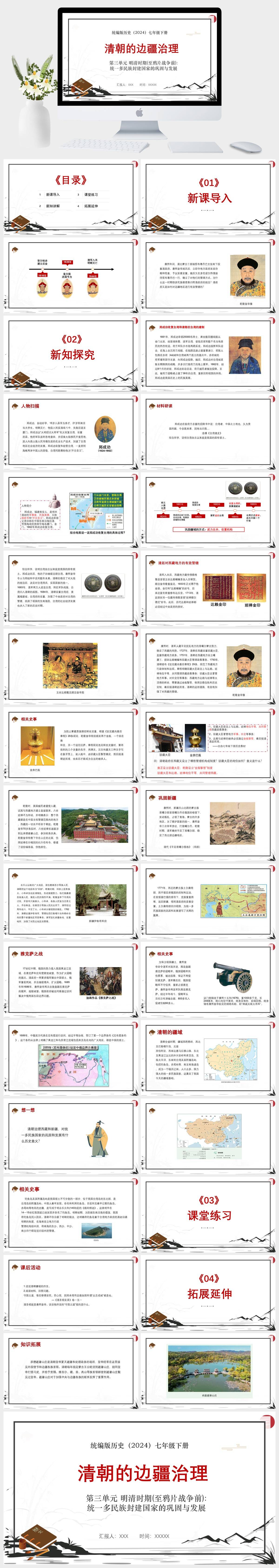 HKLS28-统编版历史(2024)七年级下册第三单元 明清时期(至鸦片战争前)统一多民族封建国家的巩固与发展 清朝的边疆治理PPT模板成品课件