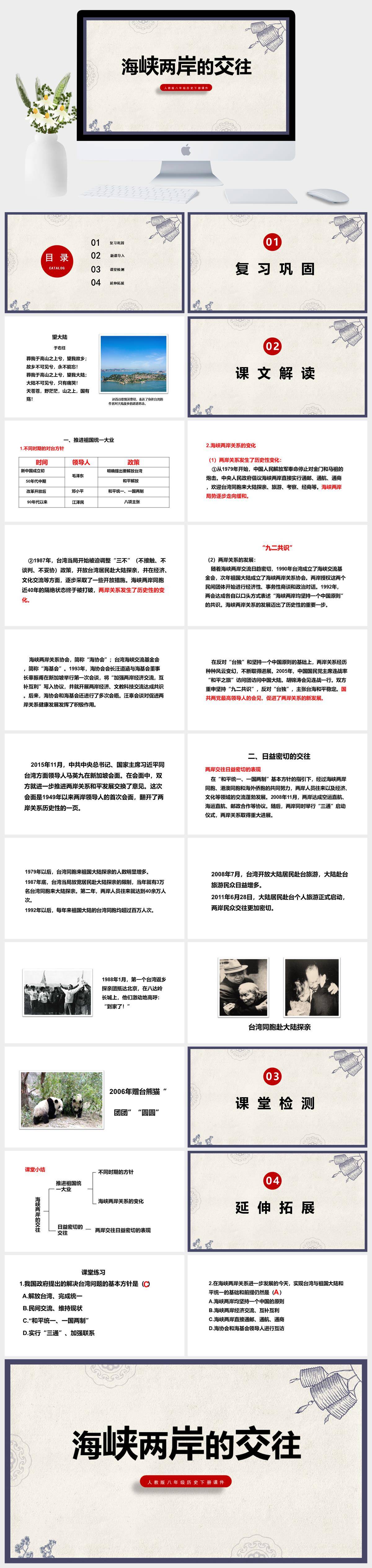 HKLS162-人教版八年级历史下册课件第14课海峡两岸的交往PPT模板成品课件