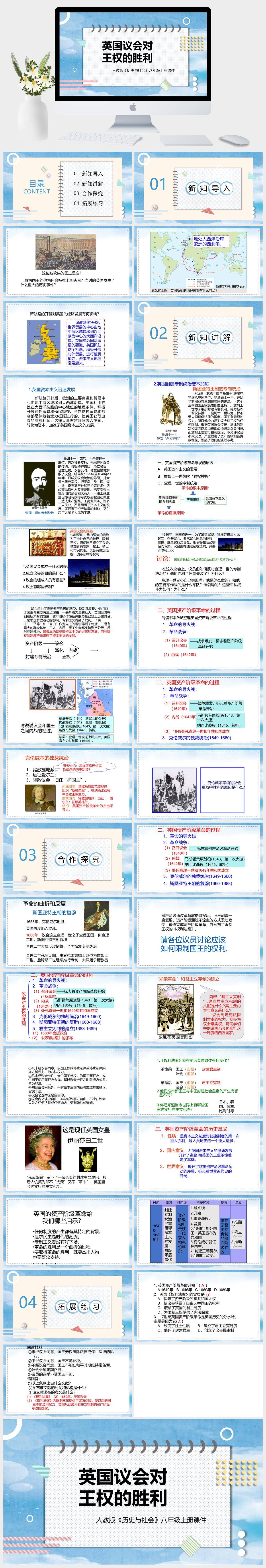HKLS190-初中历史与社会人教版八年级下册《英国议会对王权的胜利》课件 PPT模板成品课件