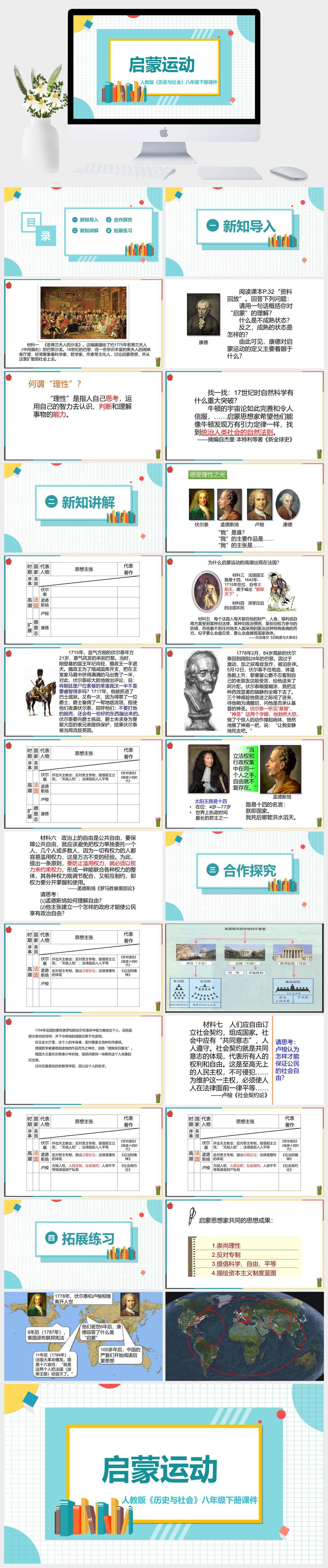 HKLS209-初中历史与社会人教版八年级下《启蒙运动》课件PPT模板成品课件