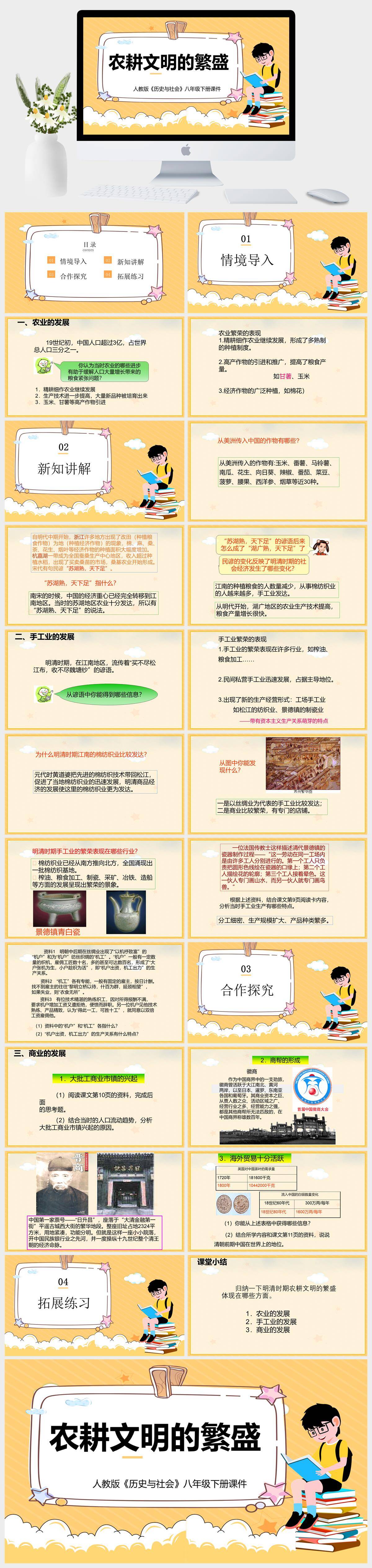 HKLS233-初中历史与社会人教版八年级下册《第五单元第一课农耕文明的繁盛》课件 PPT模板成品课件
