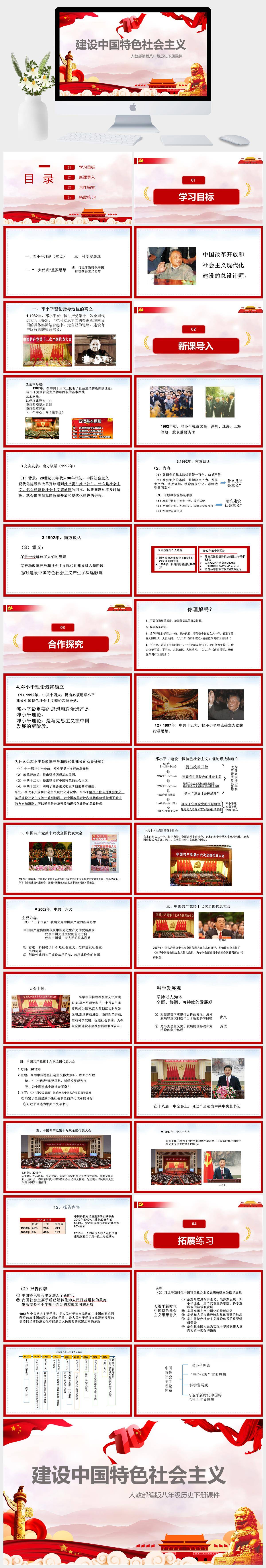 HKLS262-初中历史人教部编版八年级下册《第10课建设中国特色社会主义》课件PPT模板成品课件