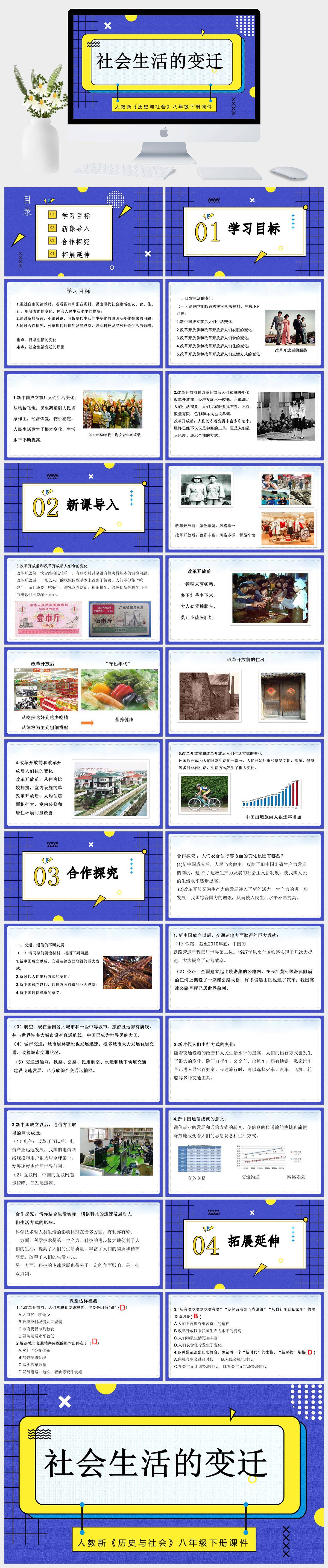 HKLS279-初中历史人教版八年级下册《第19课社会生活的变迁》课件PPT模板成品课件