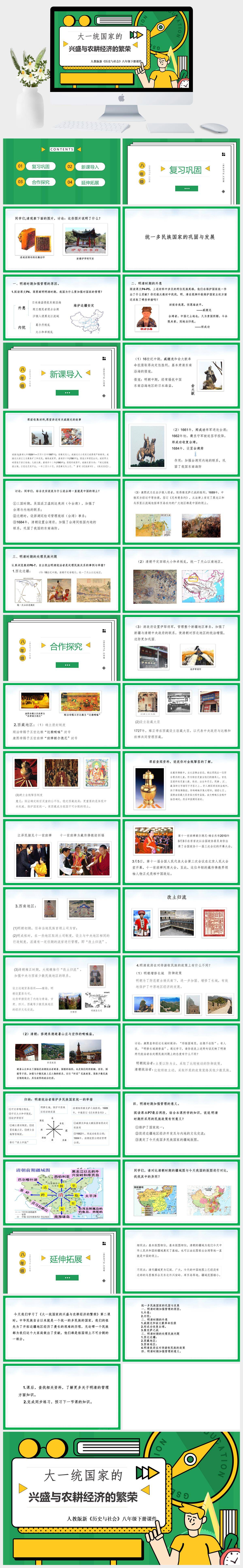HKLS330-初中历史人教版八年级下册《51大一统国家的兴盛与农耕经济的繁荣第3课时》课件PPT模板成品课件