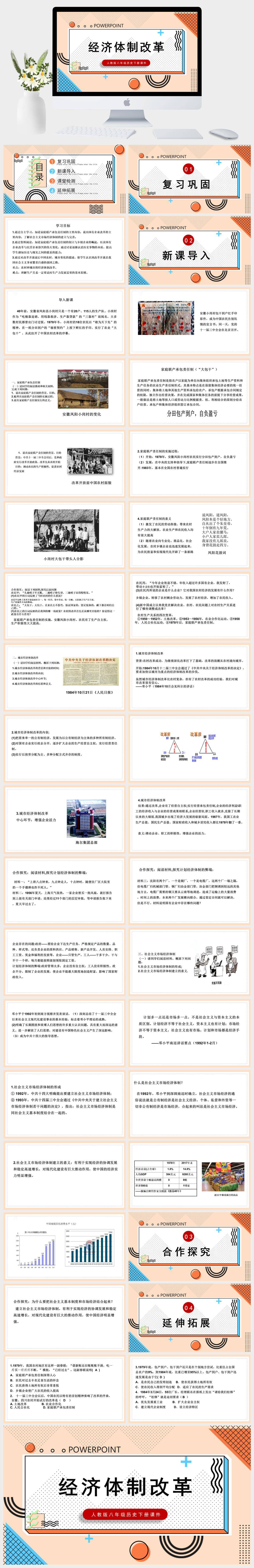 HKLS350-人教版八年级历史下册课件第8课经济体制改革PPT模板成品课件
