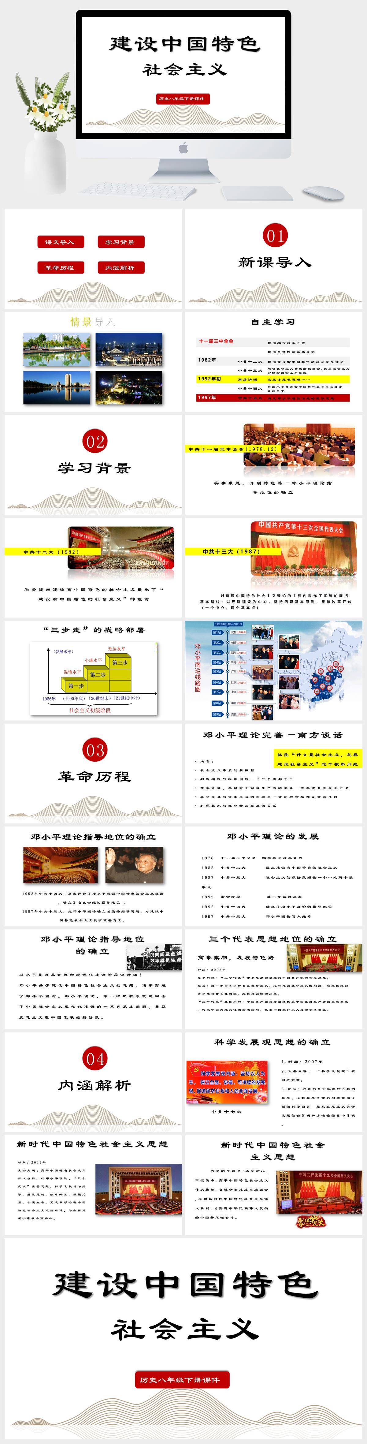 HKLS382-历史八年级下册课件建设中国特色社会主义PPT模板成品课件
