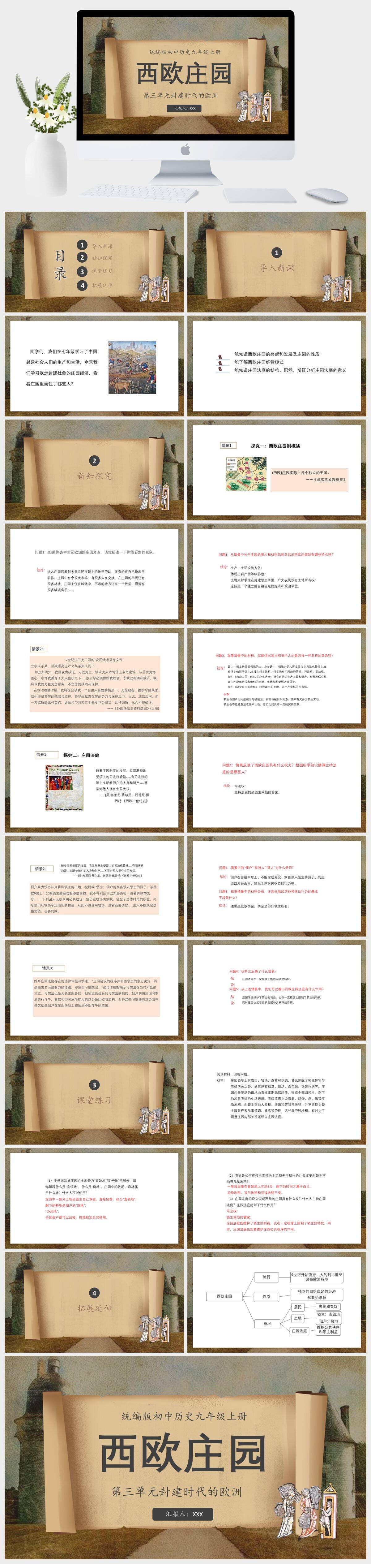 HKLS423-统编版初中历史九年级上册第三单元封建时代的欧洲西欧庄园PPT模板成品课件