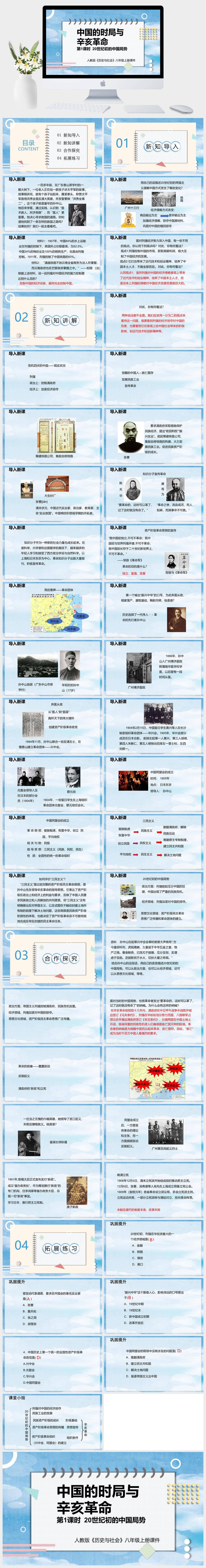 HKLS596-初中历史与社会人教版九年级上册《20世纪初的中国局势》课件PPT模板成品课件