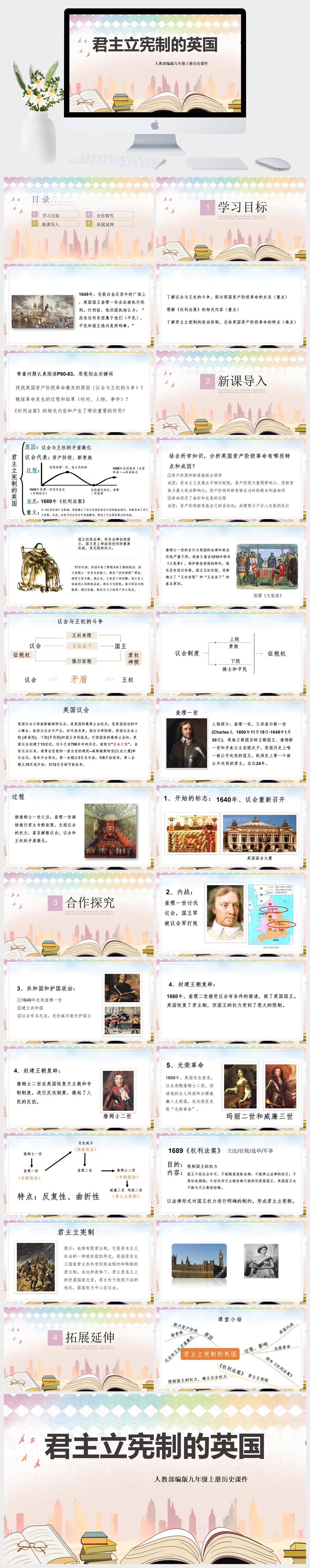 HKLS637-初中历史人教版九年级上册《君主立宪制的英国》课件PPT模板成品课件