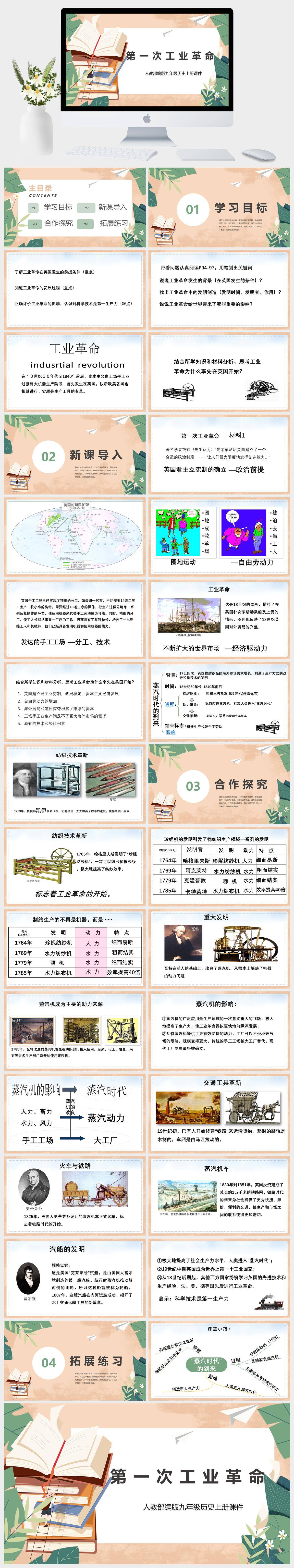 HKLS650-初中历史人教版九年级上册《第一次工业革命》课件PPT模板成品课件