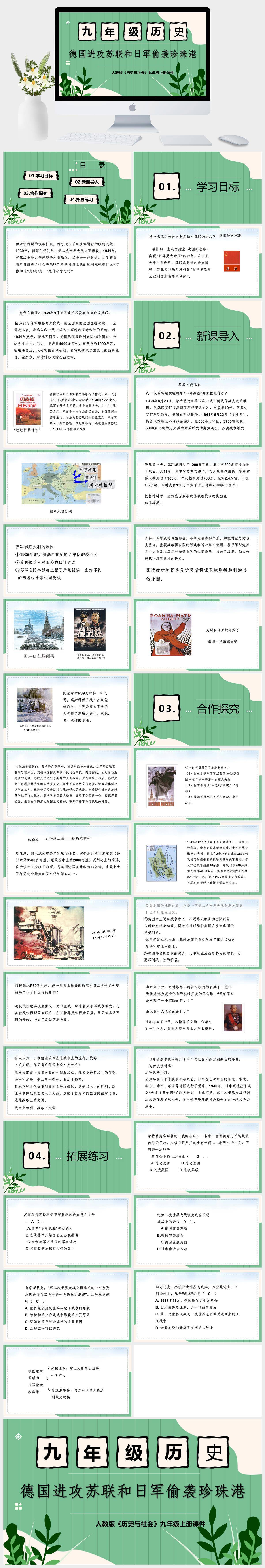 HKLS665-初中历史人教版九年级上册《第3课时德国进攻苏联和日军偷袭珍珠港》课件PPT模板成品课件
