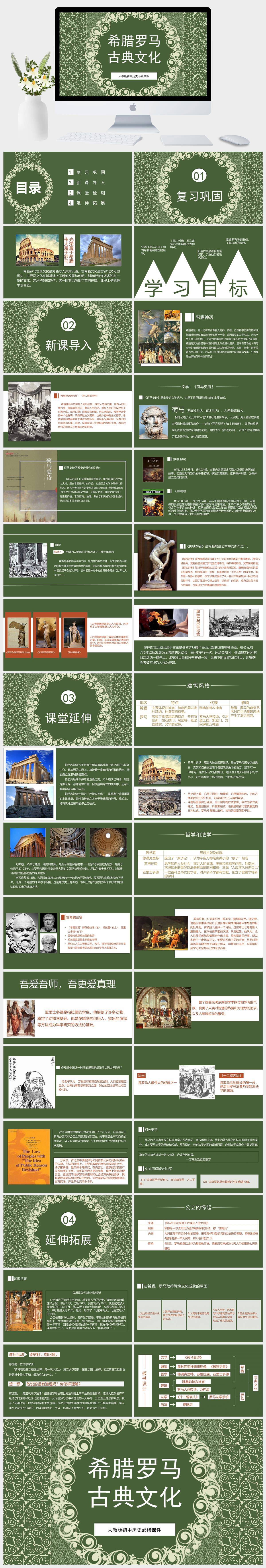 HKLS794-人教版初中历史必修课件希腊罗马古典文化PPT模板成品课件