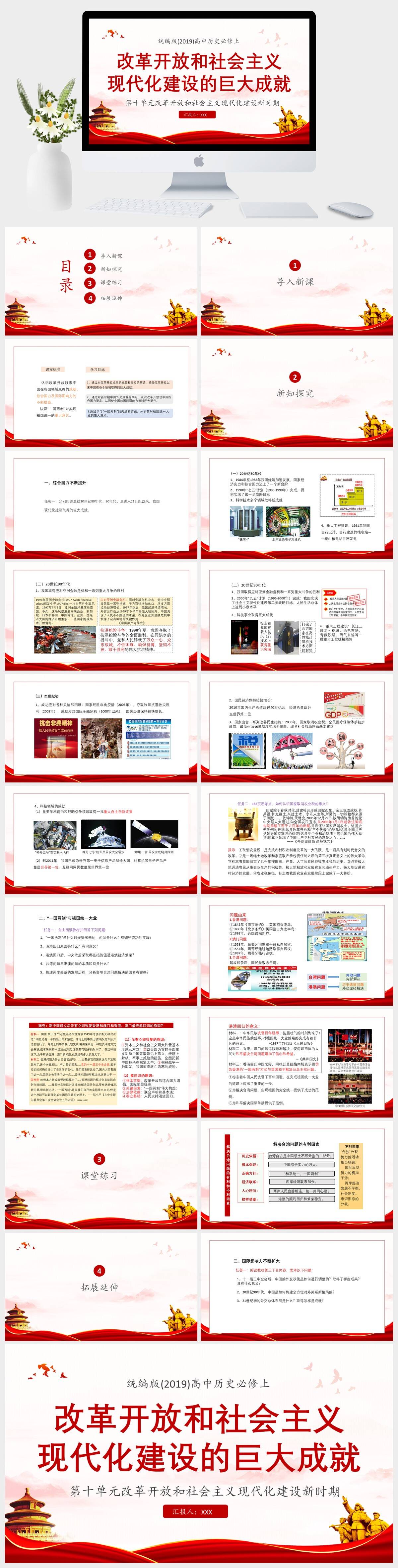 HKLS1155-党政-统编版(2019)高中历史必修上第十单元改革开放和社会主义现代化建设新时期改革开放和社会主义现代化建设的巨大成就PPT模板成品课件