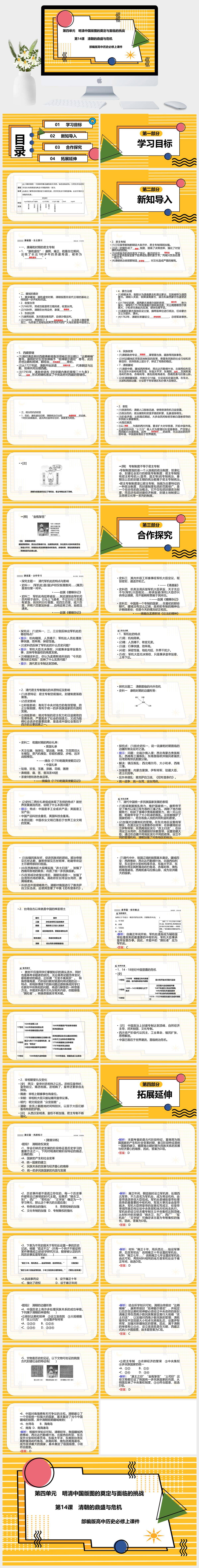 HKLS1302-部编版高中历史必修上《第四单元 第14课 清朝前中期的鼎盛与危机》课件PPT模板成品课件