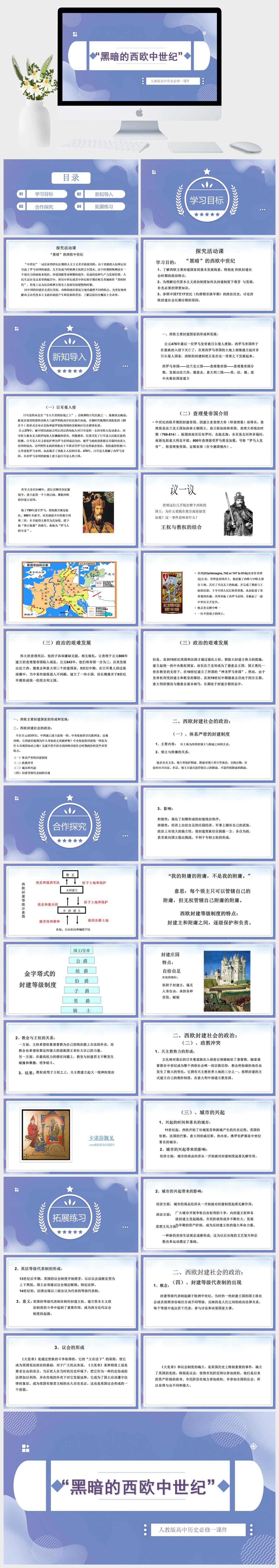 HKLS1663-高中历史人教版必修一《第二单元探究活动课黑暗的西欧中世纪》课件PPT模板成品课件