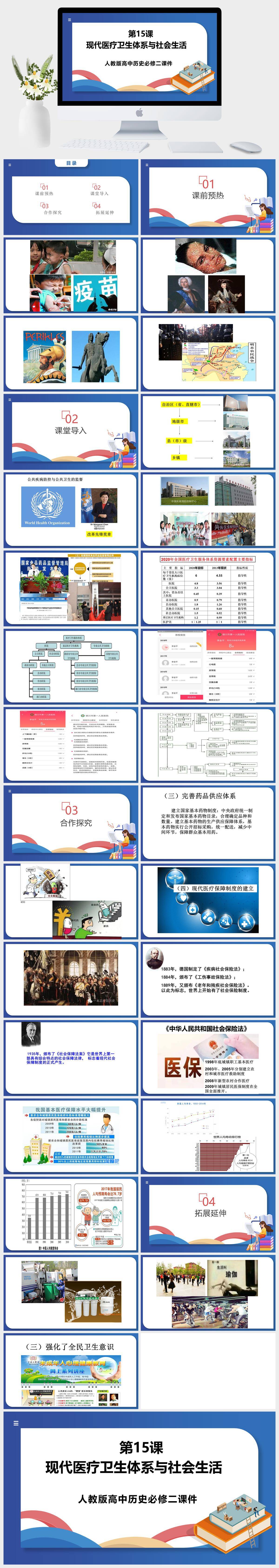 HKLS1738-人教版高中历史必修二《第15课-现代医疗卫生体系与社会生活》课件PPT模板成品课件