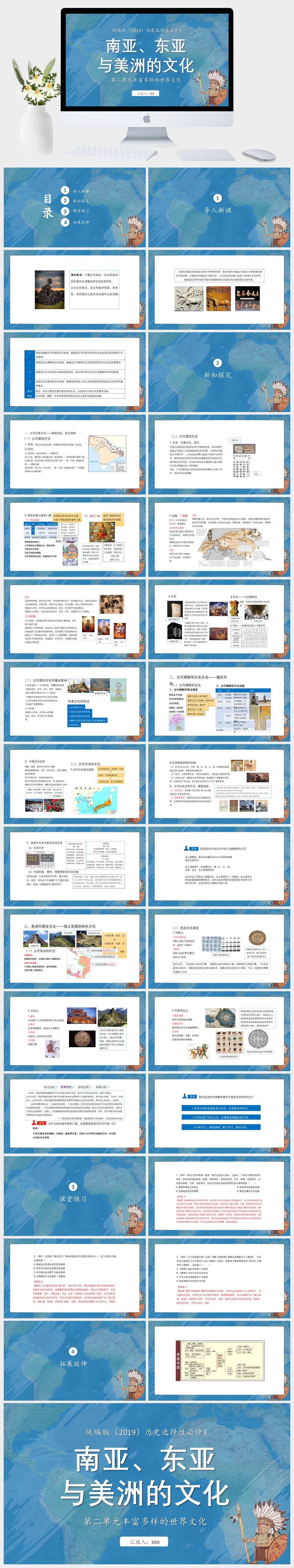 HKLS1821-统编版(2019)历史选择性必修3第二单元丰富多样的世界文化南亚、东亚与美洲的文化PPT模板成品课件