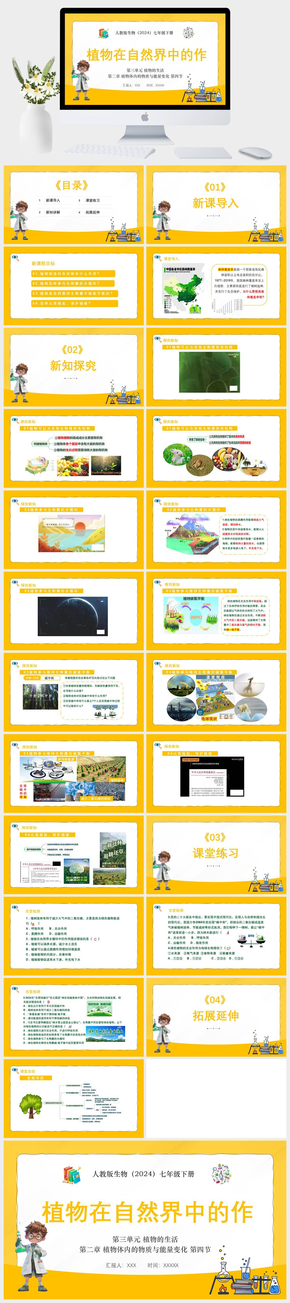 HKSW32-人教版生物(2024)七年级下册第三单元 植物的生活 第二章 植物体内的物质与能量变化 第四节 植物在自然界中的作用PPT模板成品课件