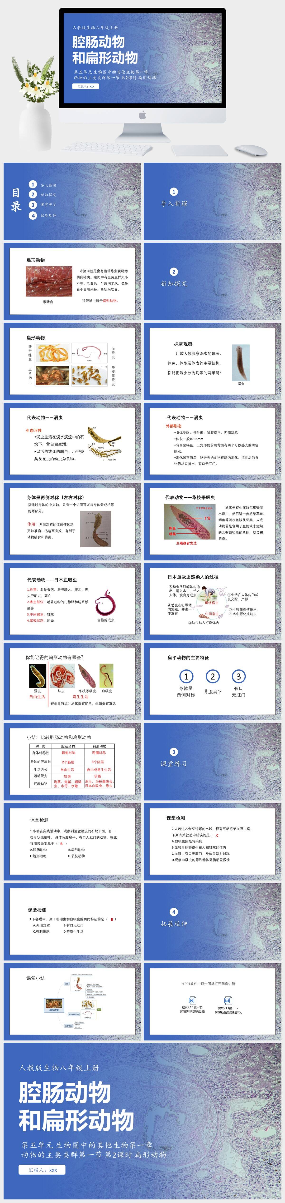 HKSW102-人教版生物八年级上册第五单元 生物圈中的其他生物第一章 动物的主要类群第一节 腔肠动物和扁形动物 第2课时 扁形动物PPT模板成品课件