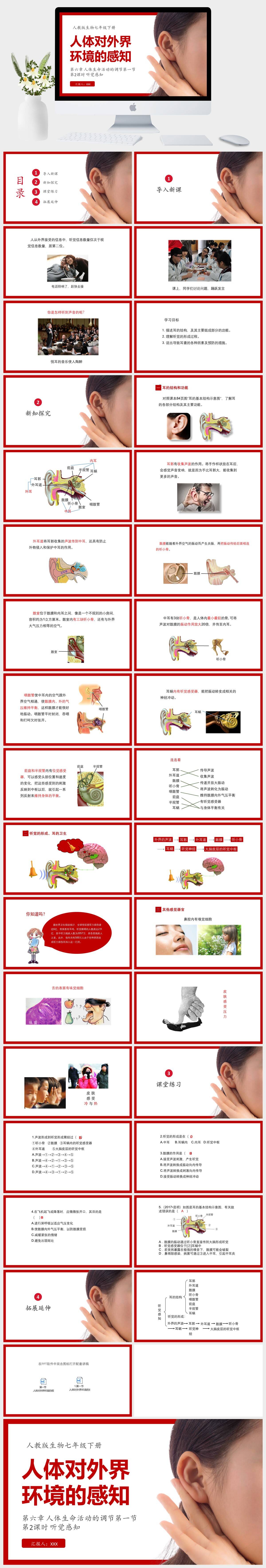 HKSW109-人教版生物七年级下册第六章 人体生命活动的调节第一节 人体对外界环境的感知第2课时 听觉感知PPT模板成品课件