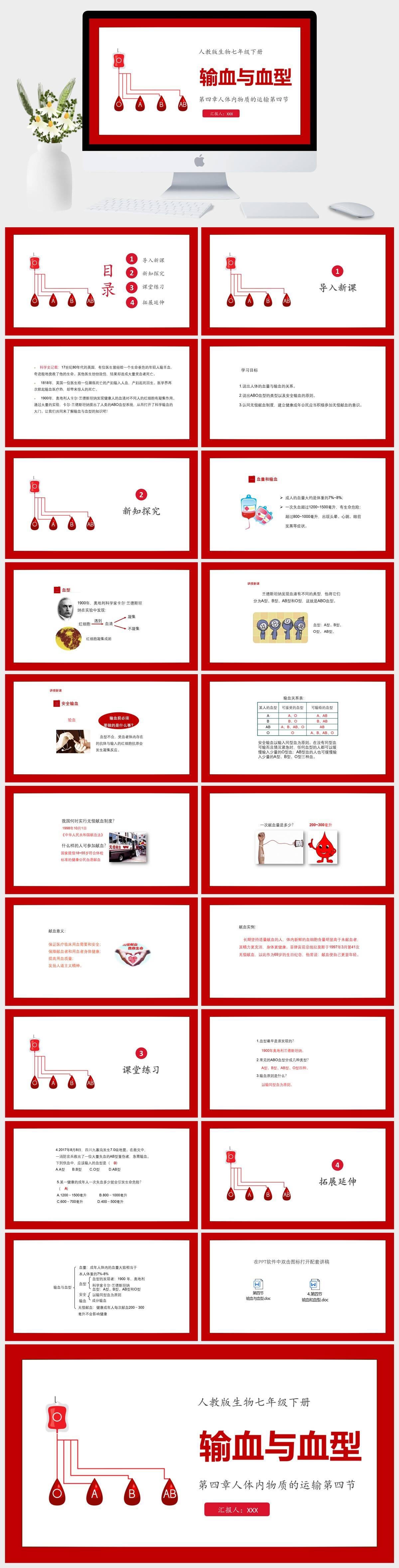 HKSW112-人教版生物七年级下册第四章人体内物质的运输第四节输血与血型PPT模板成品课件