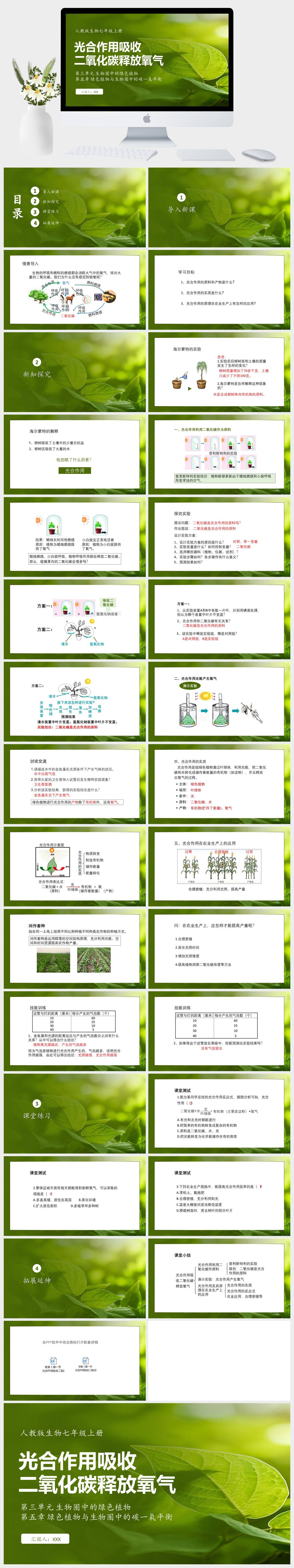 HKSW129-人教版生物七年级上册第三单元 生物圈中的绿色植物第五章 绿色植物与生物圈中的碳一氧平衡光合作用吸收二氧化碳释放氧气PPT模板成品课件