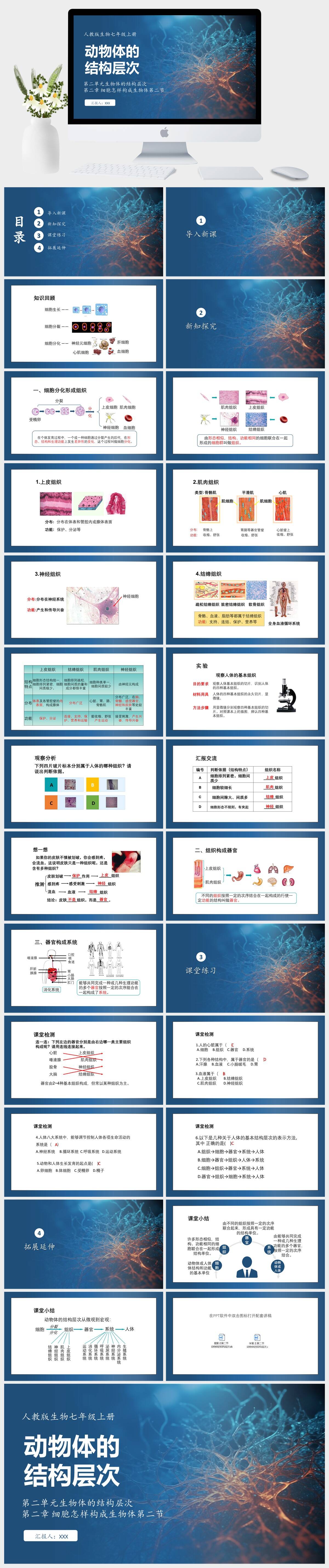 HKSW139-人教版生物七年级上册第二单元生物体的结构层次第二章 细胞怎样构成生物体第二节动物体的结构层次PPT模板成品课件