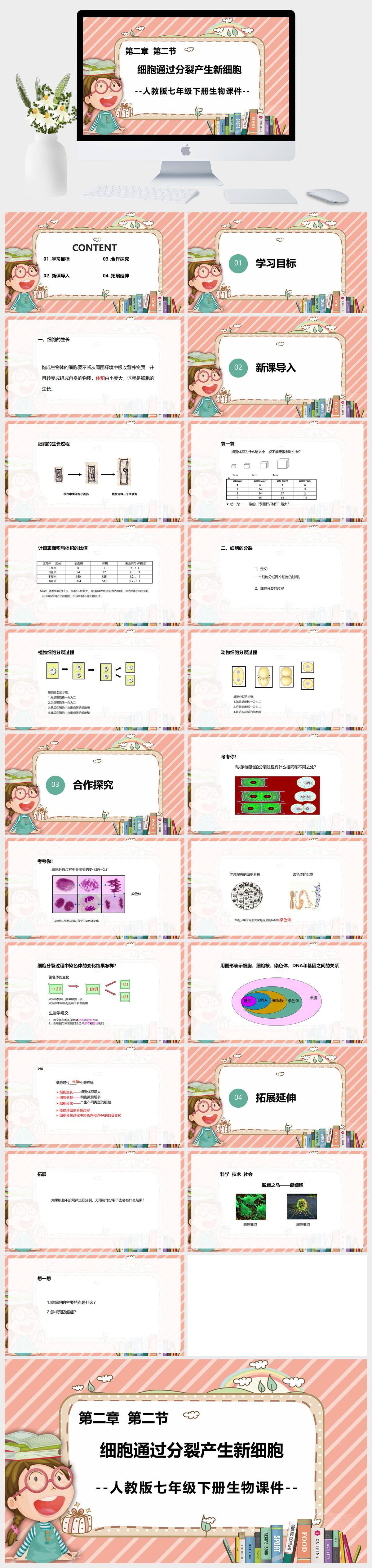 HKSW265-人教版七年级上册生物《细胞通过分裂产生新细胞》第二节课件PPT模板成品课件