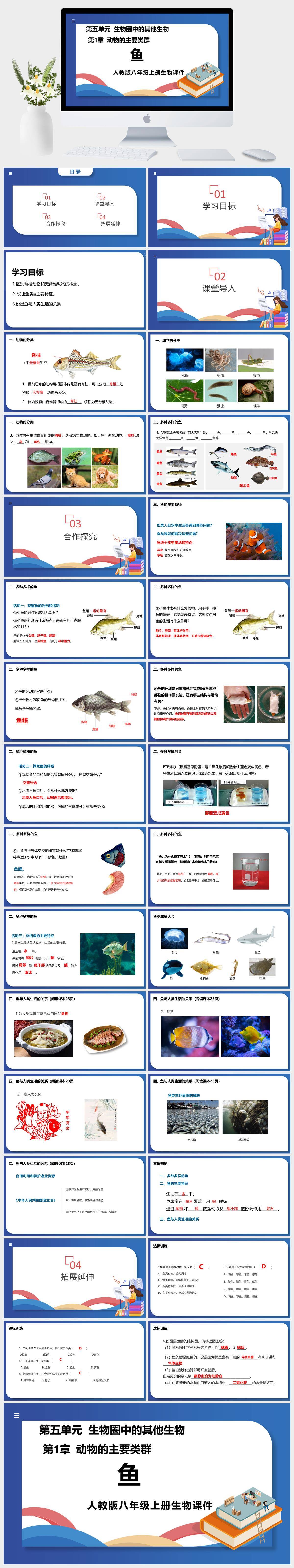 HKSW597-人教版八年级上册生物《鱼》课件PPT模板成品课件