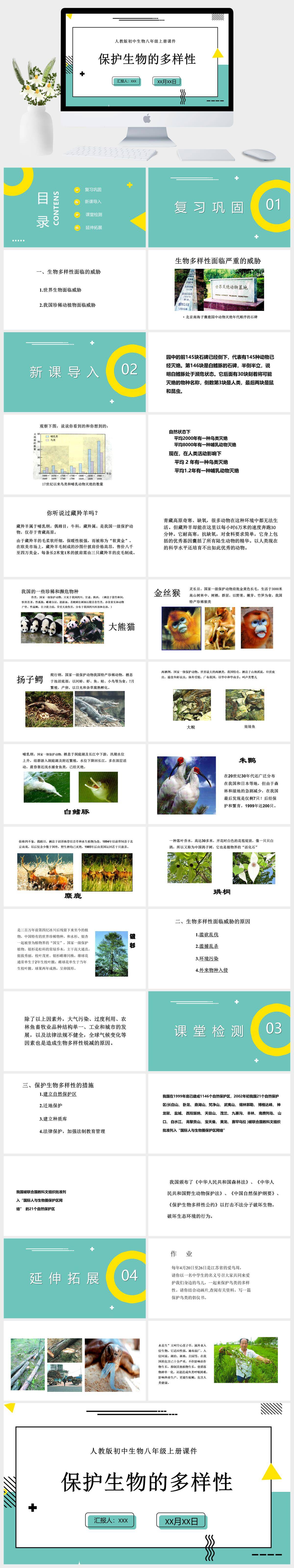 HKSW777-人教版初中生物八年级上册课件保护生物的多样性PPT模板成品课件