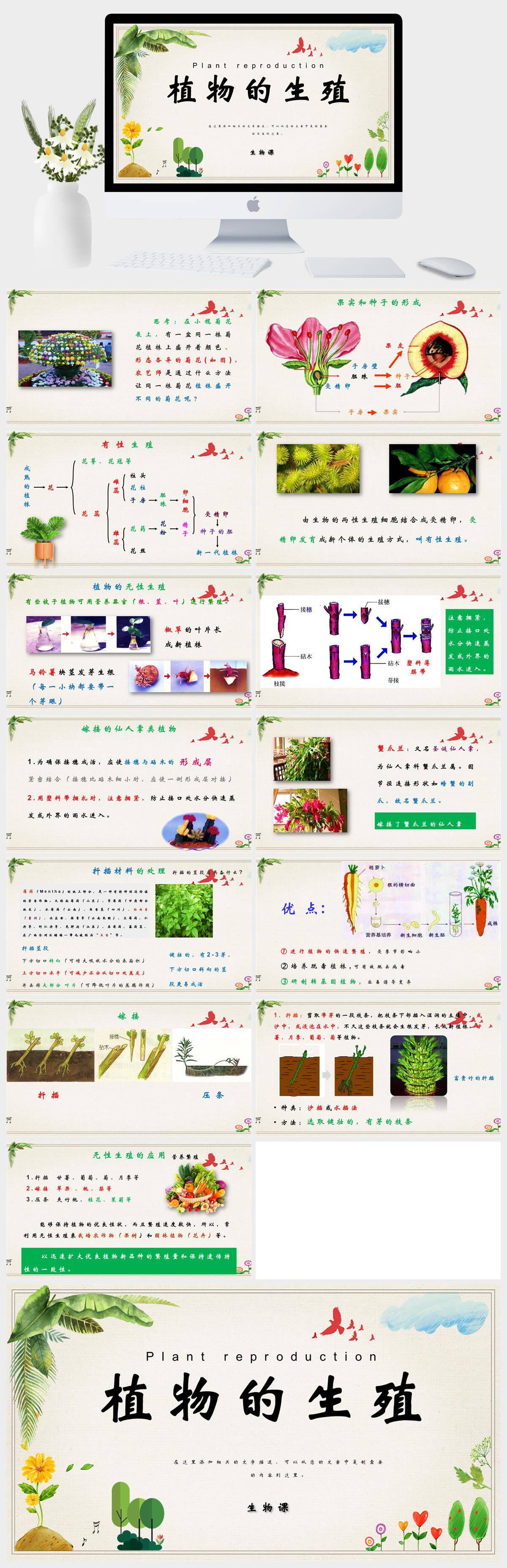 HKSW980-初中生物八下植物的生殖课件pptppt模板成品课件