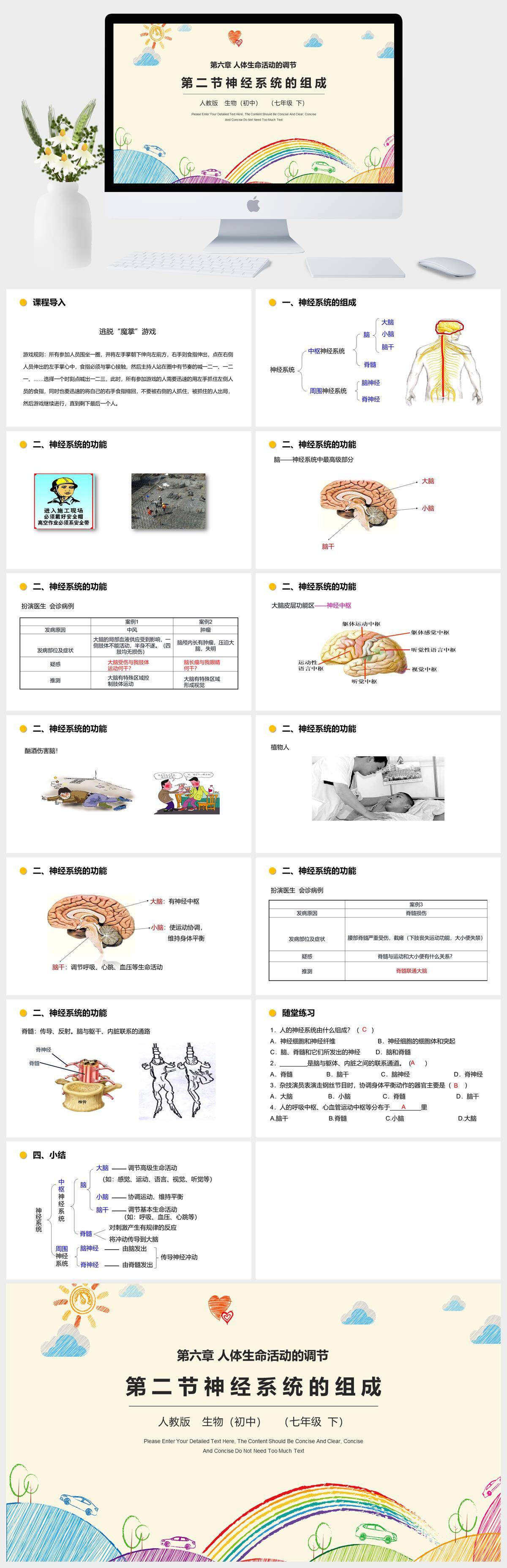 HKSW1064-人教版七年级生物下册课第六章人体生命活动的调节第二节神经系统的组成PPT模板成品课件