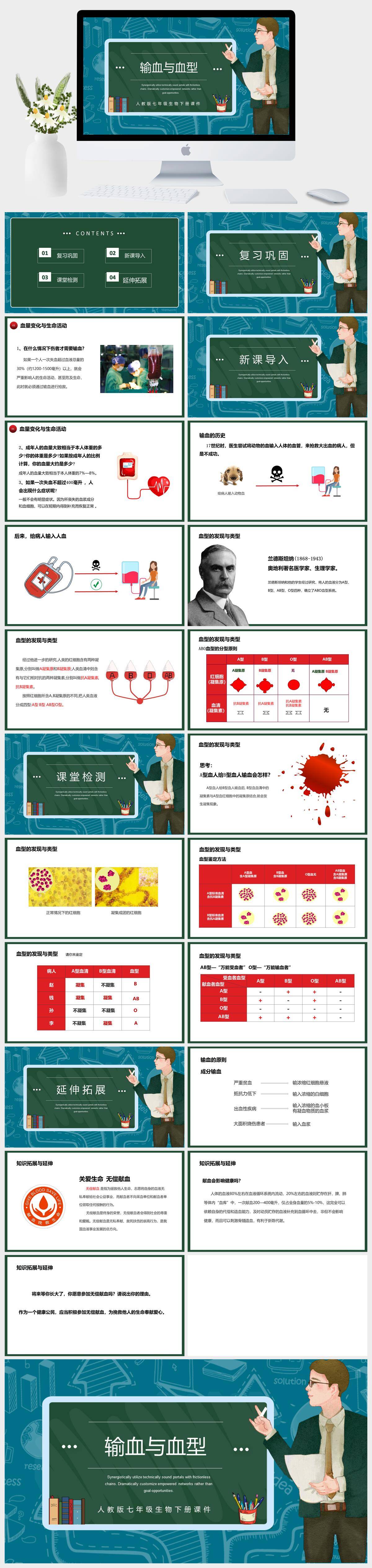 HKSW1078-人教版七年级下册生物课件人体内的物质运输输血与血型PPT模板成品课件