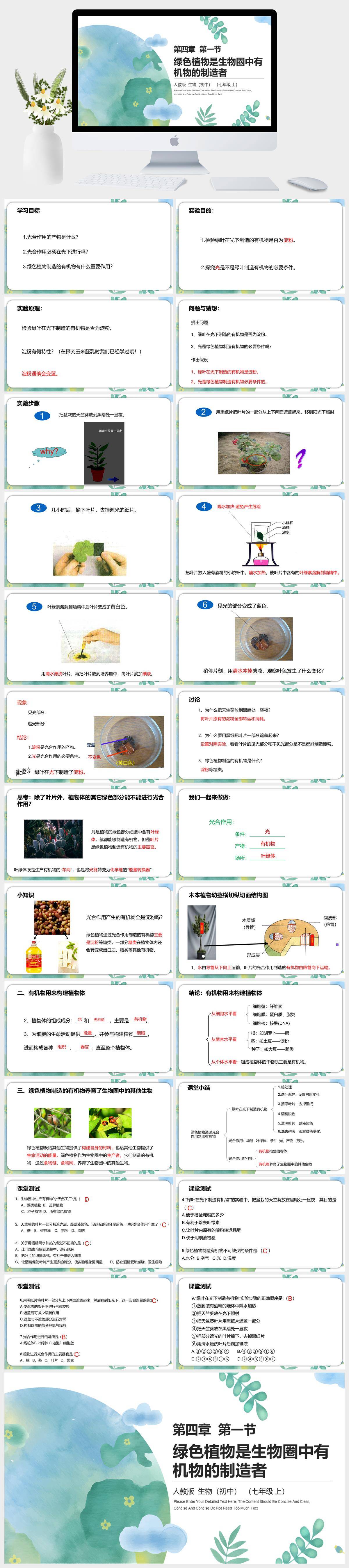 HKSW1131-人教版七年级生物上册课件绿色植物是生物圈中有机物的制造者PPT模板成品课件