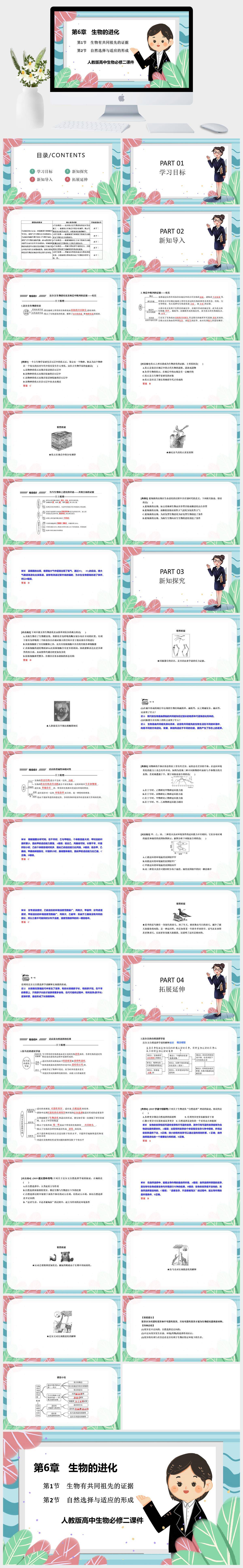 HKSW1534-人教版高中生物必修二《第1节 生物有共同祖先的证据和第2节 自然选择与适应的形成》 课件PPT模板成品课件